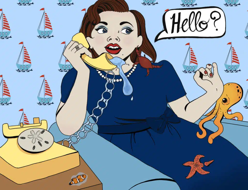 Ignorance and denial of science directly hurts the flora and fauna being negatively affected by climate change. Fear drives humans to wave off concerns about the crisis because accepting the real dangers the world faces means facing lifestyle changes many people are not ready to accept. Furthermore, witnessing people denounce the validity of climate change—from deniers on the news to protests in my own small town—came with the realization that many people ignore the obvious signs and facts of climate change to support their own agendas. The purposeful and sometimes weaponized ignorance inspired this artwork. Here I showcase the average “All American” person finally answering the Earth’s call. Unfortunately, her answer comes too late, as all the consequences of climate change have already overtaken her home without her noticing. The piece reflects the attitude of many Americans—that if climate change is not directly affecting them, it isn’t their problem. But this simply is not the case because climate change affects all of us. Some people will not care until it is too late, but with artworks like these, I believe a real change can be made. Spreading information can inspire young people to act, combating climate change to save plants, animals, and eventually humans.