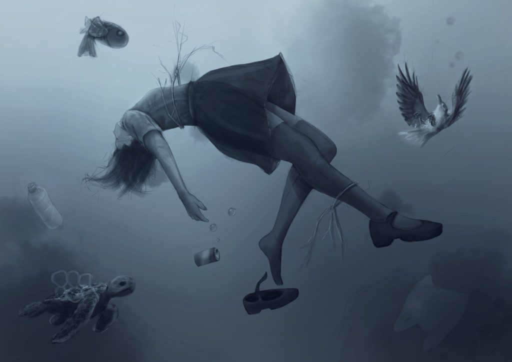 Creating my piece, "Sea of future consequences," I tried to convey the importance of the planet, and more specifically, of our seas. The pollution level is highly dangerous for animals and humans. Many people think that sea pollution does not affect us, but in fact, it does. In my case I have become vegan after reading about the problem, but those who eat fish regularly are eating plastic too. If we want to save the planet, preserve biodiversity, and reduce the impact of climatic change, we must be aware of how bad we are doing some things that we must change as soon as possible. In "Sea of future consequences" appears a girl, which is the "cause" because she represents humans, and three marine animals that represents the "consequences," because they are suffering. I also wanted to add plastic objects, and in the future if we do not change anything, there will be more plastic than fishes in the ocean. I have created this image because I want everyone to be aware of the future consequences of our actions. I did it using Photoshop CC 2018 and my tablet Wacom Cintiq 13hd. I have learned a lot since I started drawing the piece and reading about that issue. Personally I have become vegan, besides, I am going to reduce my plastic consumption. The less plastic we use, the better.
