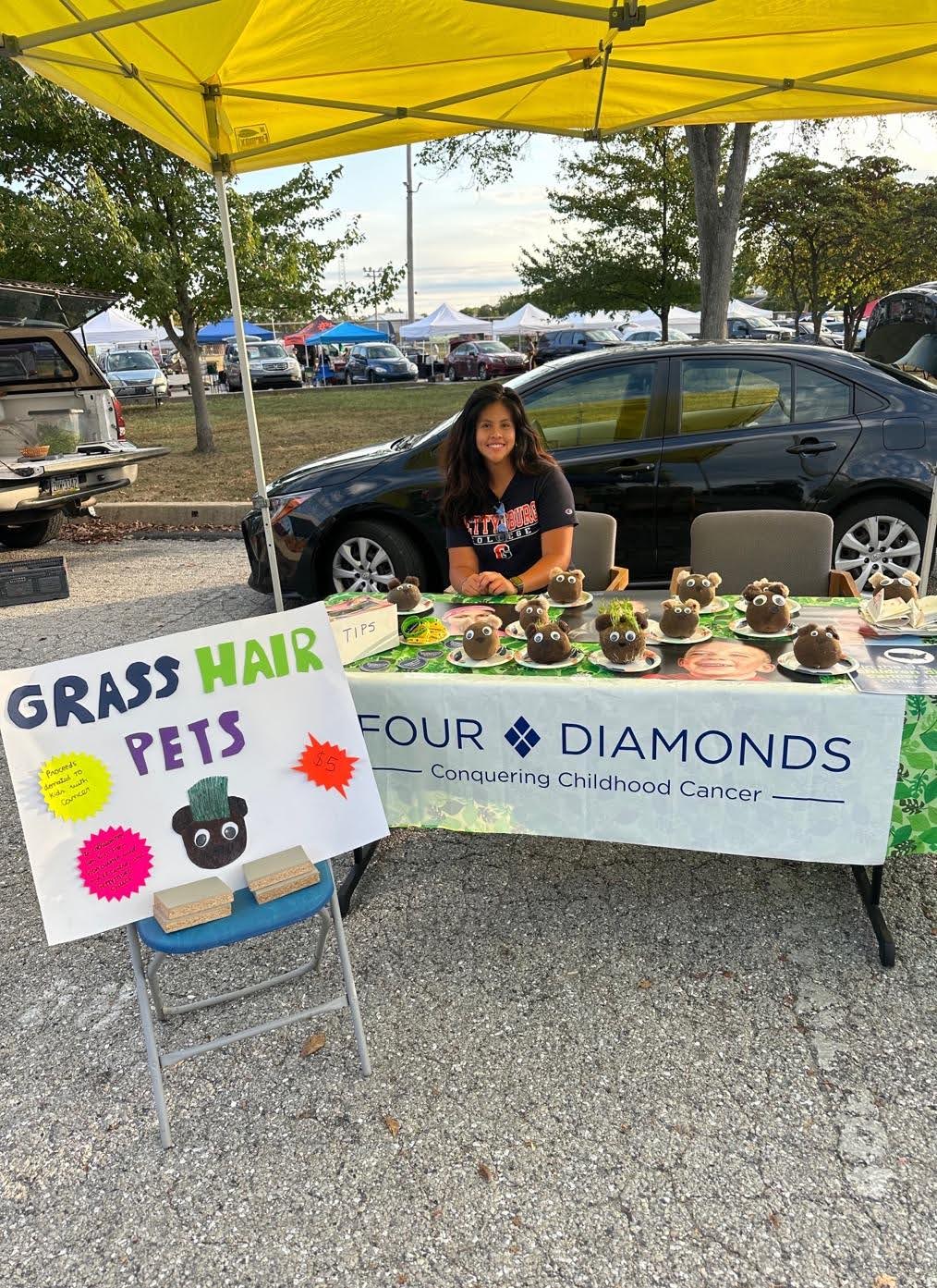 An exciting project Ariana recently worked on is a collaboration with elementary school students to create grass hair pets — fun, eco-friendly crafts that taught kids to care for the environment while raising awareness about childhood cancer. She sold these grass hair pets at farmers markets and donated all the raised money to Four Diamonds, an organization that supports children with cancer and their families.