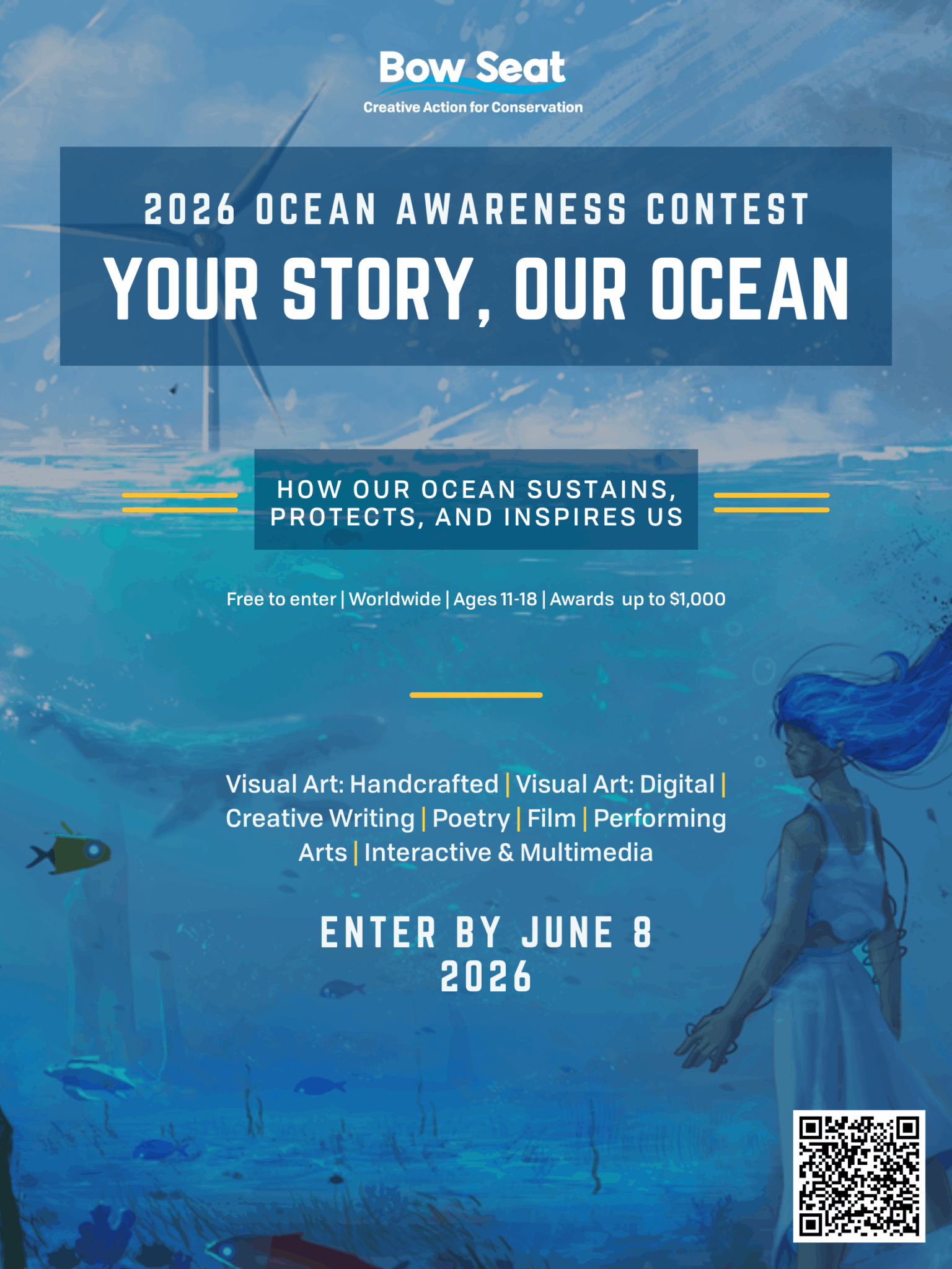 Since 2011, the Ocean Awareness Contest has encouraged students to explore a wide array of critical issues in ocean conservation—including the climate crisis, biodiversity loss, and pollution—with a focus on their connection to humans in their roles as both problem-makers and problem-solvers.